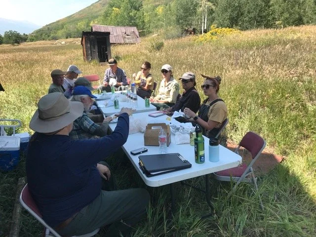 HCHF invites team of preservation specialists from HistoriCorps of Colorado to meet on site with Aspen-Sopris Deputy District Ranger Jennifer Schuller, Cultural Heritage Manager Thomas Fuller and entire HCHF team to view, analyze, measure and photograph each structure targeted for stabilization as the basis for a comprehensive Conditions Assessment and corresponding recommendations prior to year-end